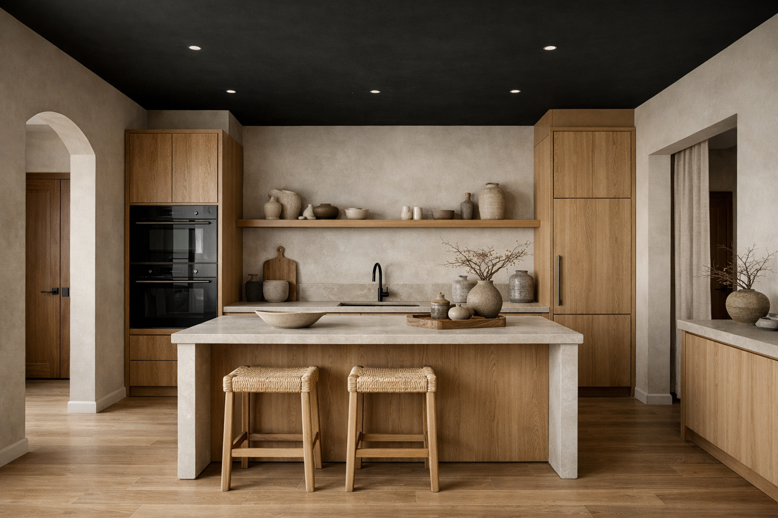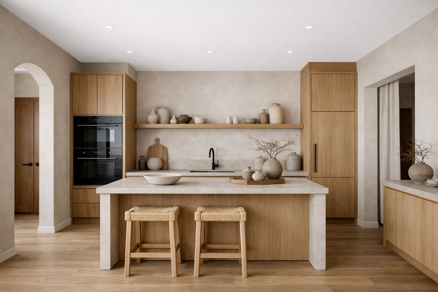 Гармоничное сочетание японской эстетики и скандинавской функциональности. Натуральное дерево, нейтральные тона и осознанный подход к каждому элементу интерьера.