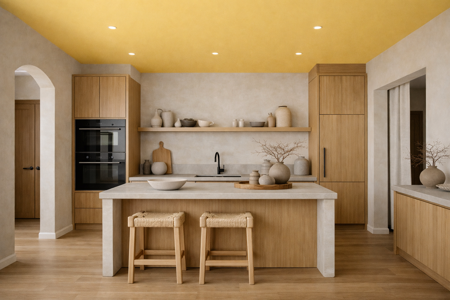 В этой подборке 5 примеров оформления кухни в стиле Japandi, созданных нейросетью RoomGPT. Каждое изображение сгенерировано на основе реального фото помещения.