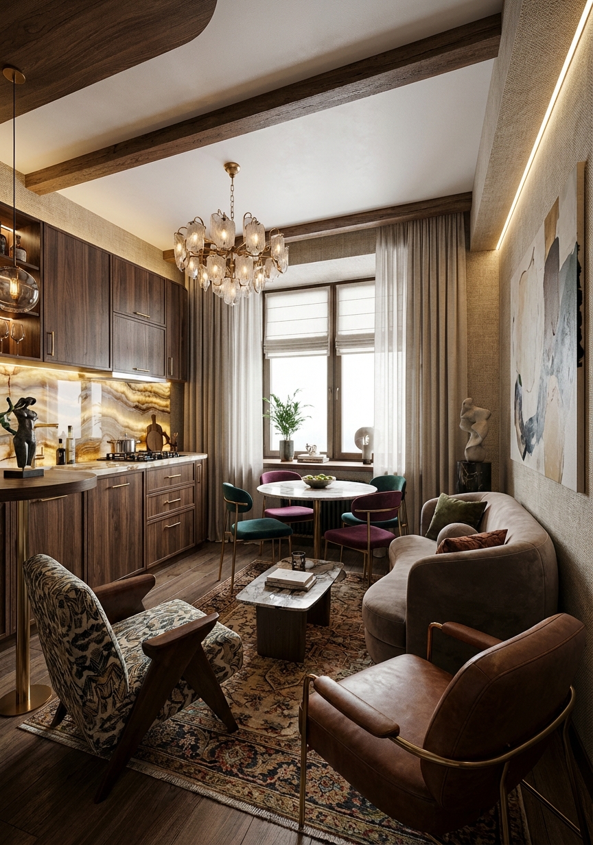 Смелое сочетание разных стилей, эпох и культур в одном пространстве. Эклектика позволяет выразить индивидуальность через необычные комбинации мебели и декора.